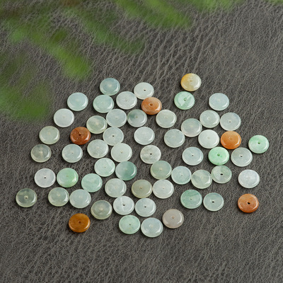 天然緬甸A貨翡翠9mm三彩平安扣天然玉石散珠隔片手工DIY材料飾品