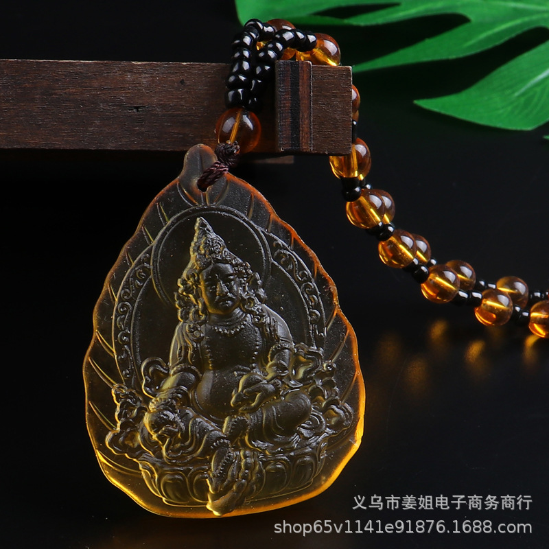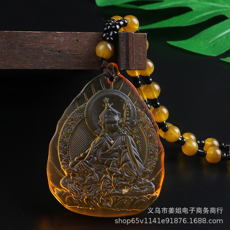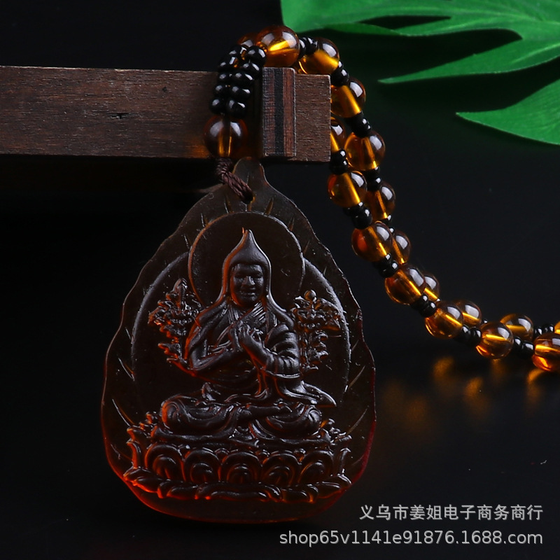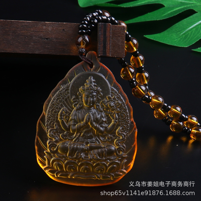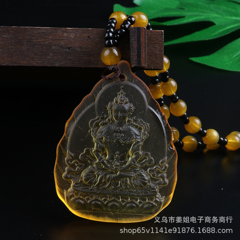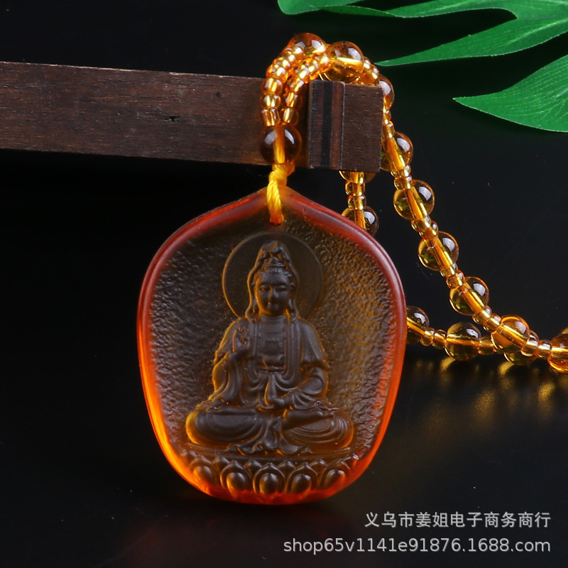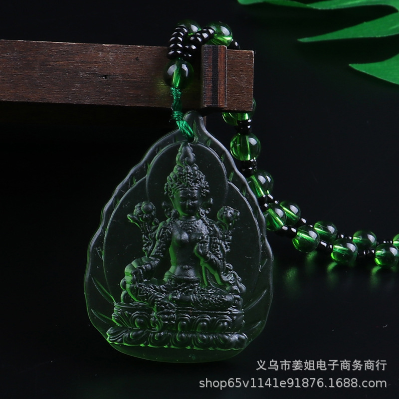 新款復古彩色玻璃觀音菩薩綠度母項鍊 男女吊墜佛 廟會毛衣鏈批發