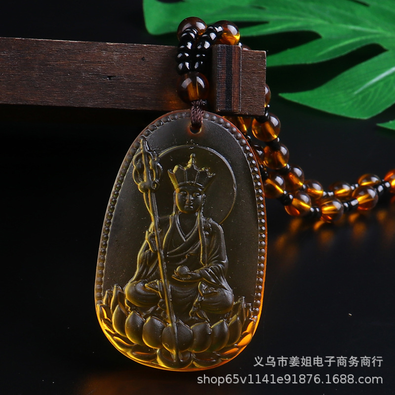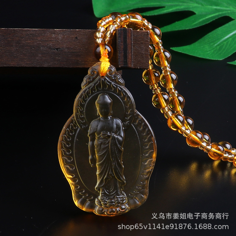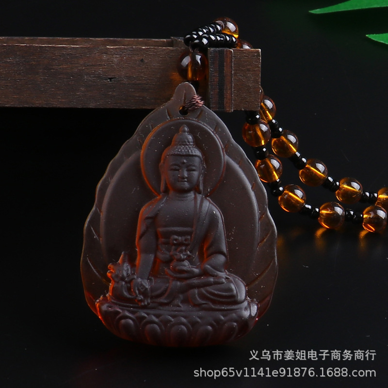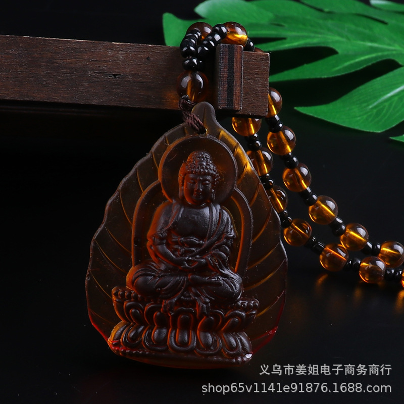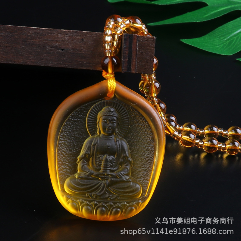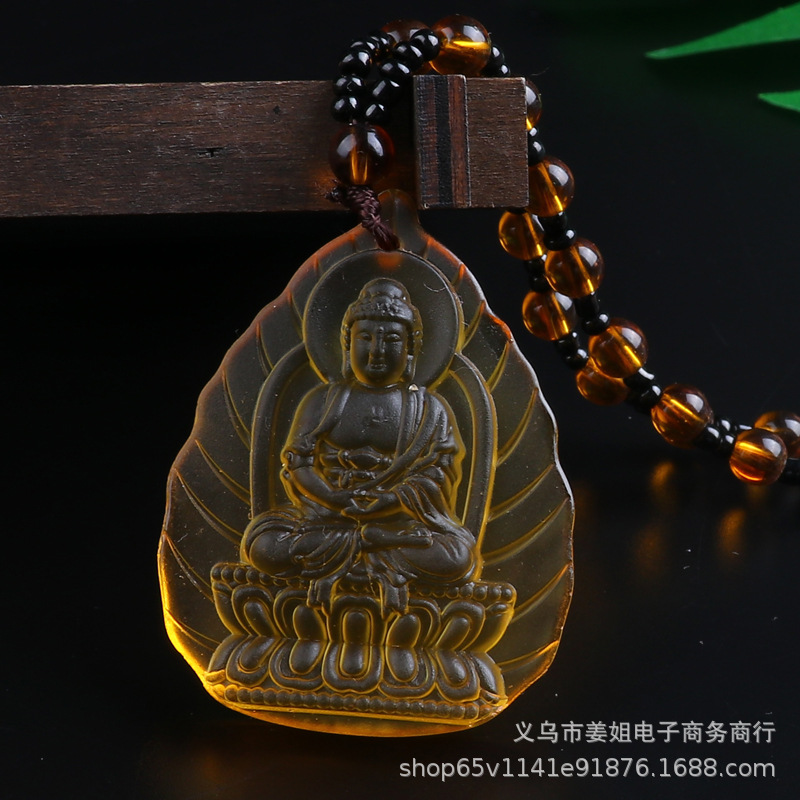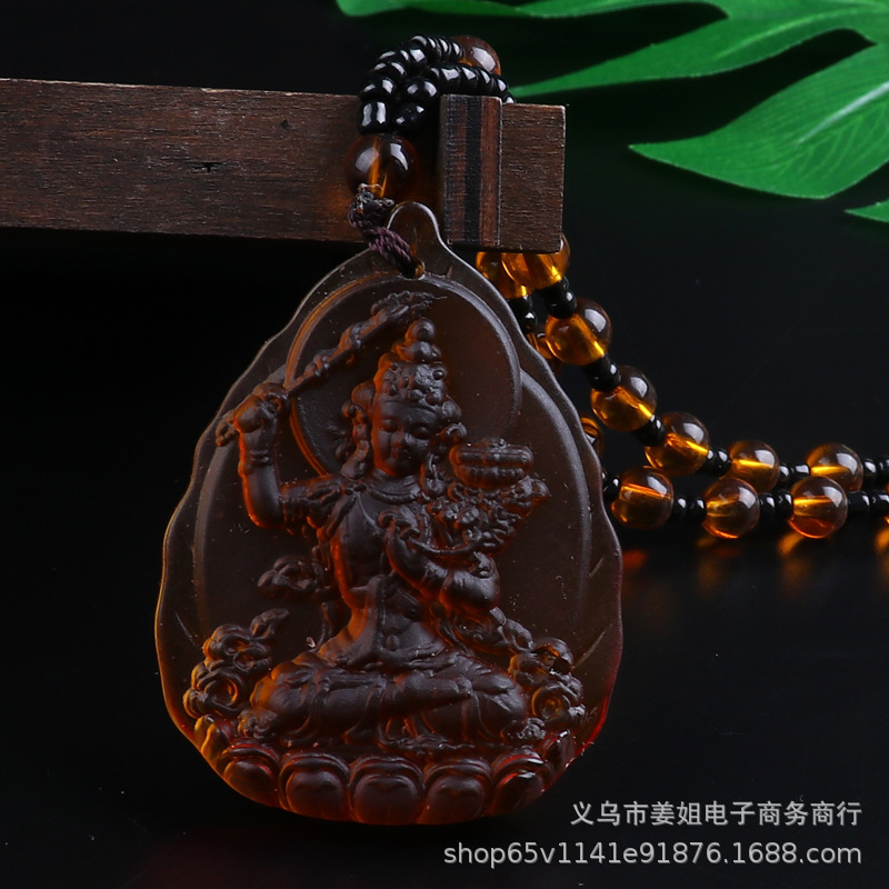 新款復古彩色玻璃觀音菩薩綠度母項鍊 男女吊墜佛 廟會毛衣鏈批發