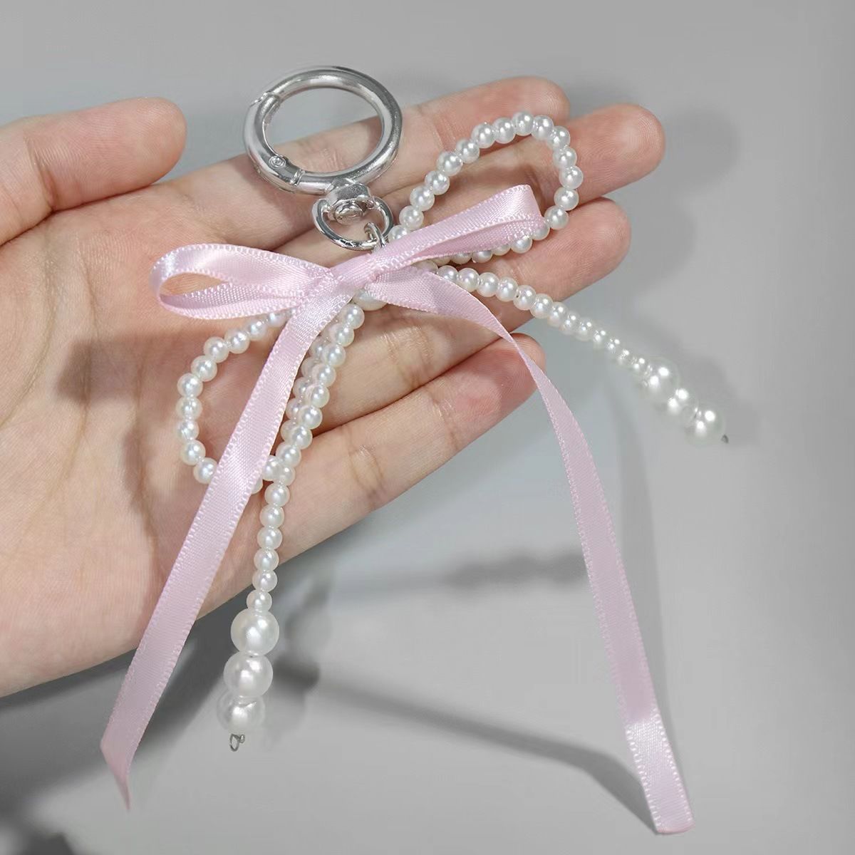 粉蝴蝶結小絲帶蝴蝶結珍珠掛件