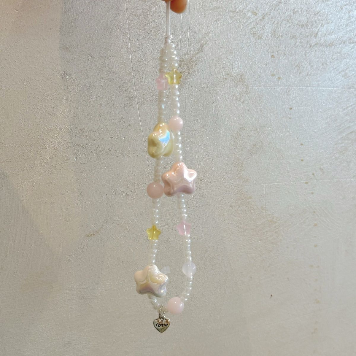 自製ins少女掛繩陶瓷星星撞色串珠手機鏈條手提相機diy