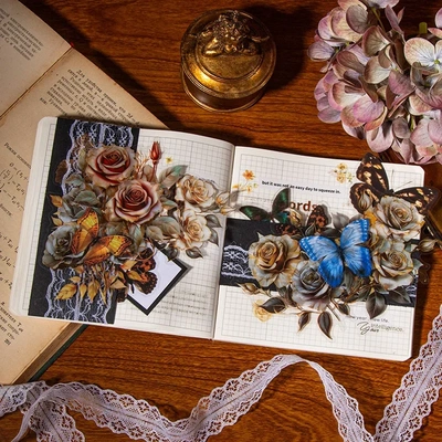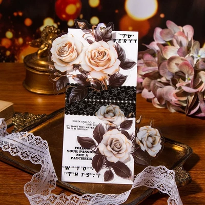 美好的一天PET貼紙 赴約玫瑰系列復古拼貼大尺寸花卉手賬裝飾素材