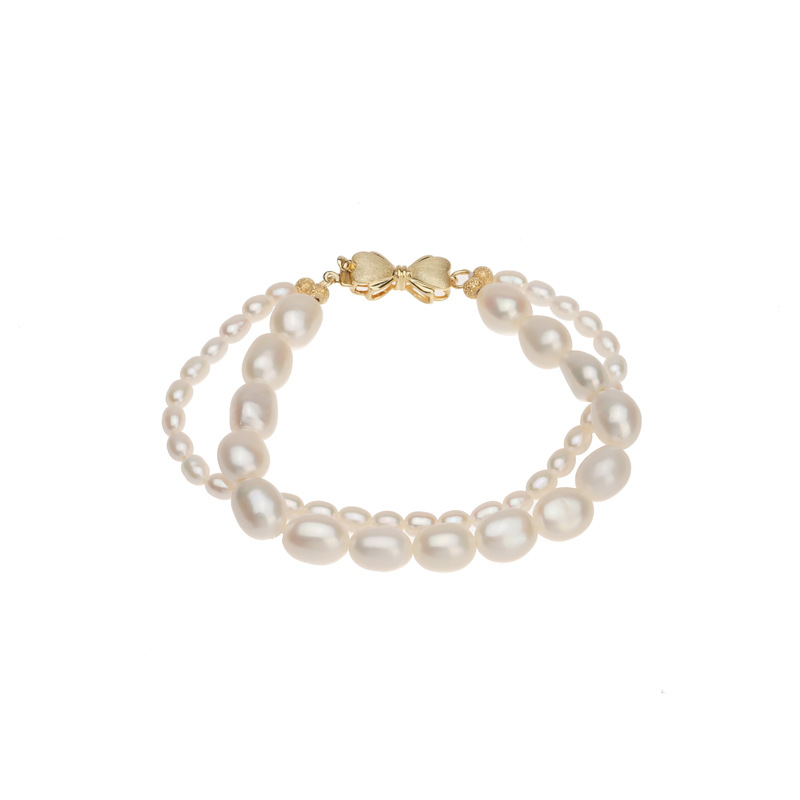 雙層巴洛克蝴蝶結扣珍珠套鏈手鍊項鍊天然淡水珍珠小眾輕奢氣質款