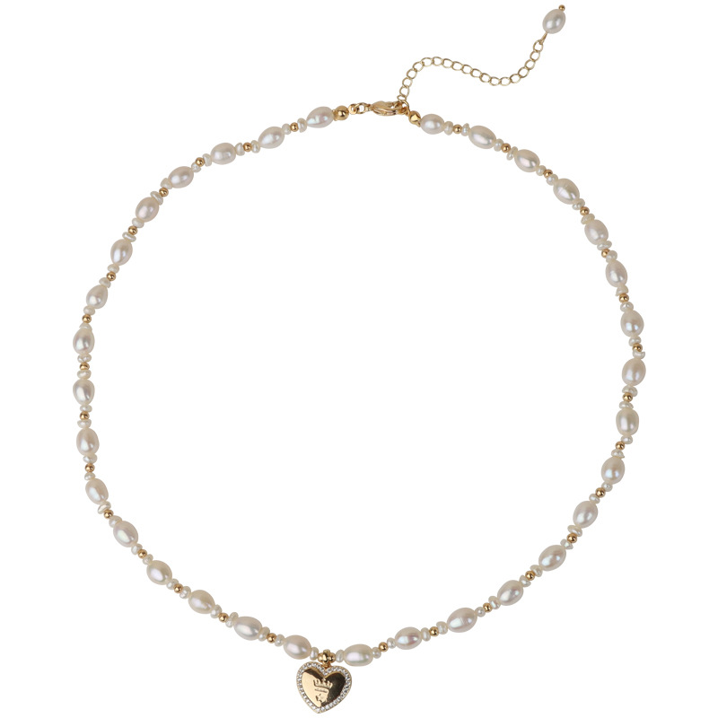 工廠原創設計愛心吊墜天然淡水珍珠項鍊鎖骨鏈簡約百搭批發