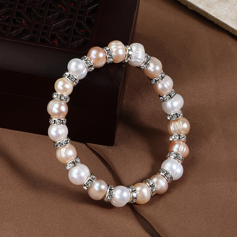 亮晶晶鬆緊彈力手串天然淡水真珍珠手鍊帶鑽圈跑量款批發