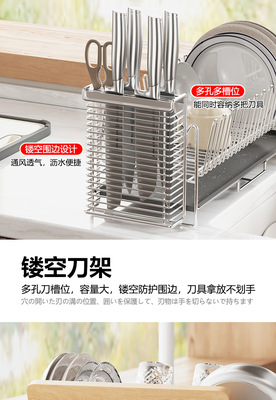 Drain dish rack with 304 stainless steel bowl holder + knife stand