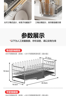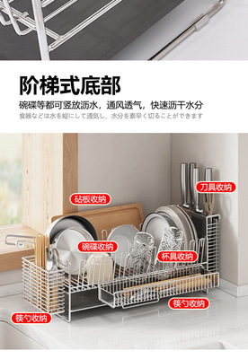 Flow guide plate 304 stainless steel bowl and plate rack + chopstick holder + cutting board rack + knife holder