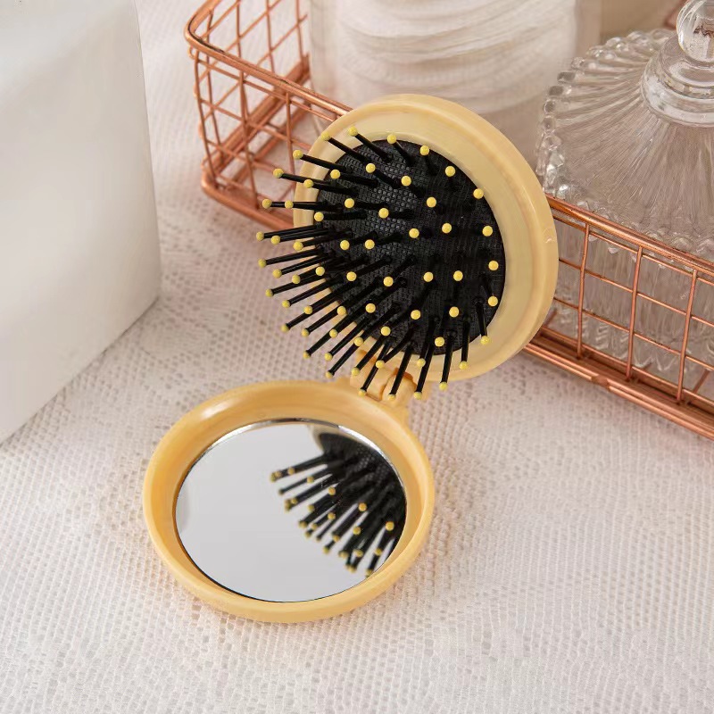 摺疊鏡梳【米黃】