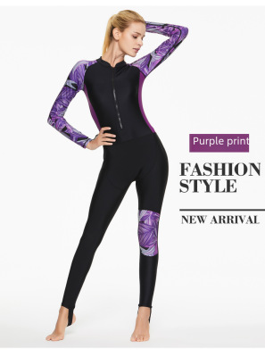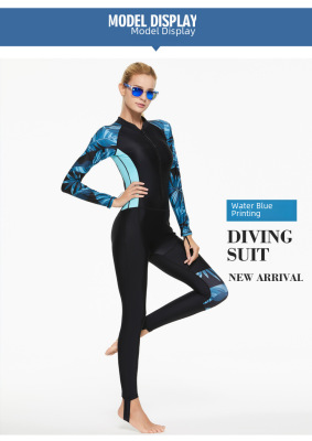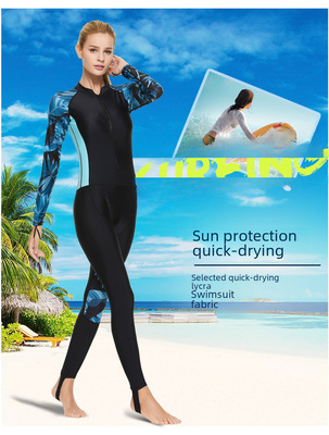 Long-sleeved snorkeling surfing women's swimsuit with chest pads, sports thermal swimwear, slimming belly-covering quick-drying diving suit