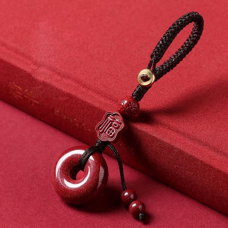 紫金砂硃砂平安扣鑰匙扣福字鑰匙扣吊墜掛件本命年低含量硃砂批發