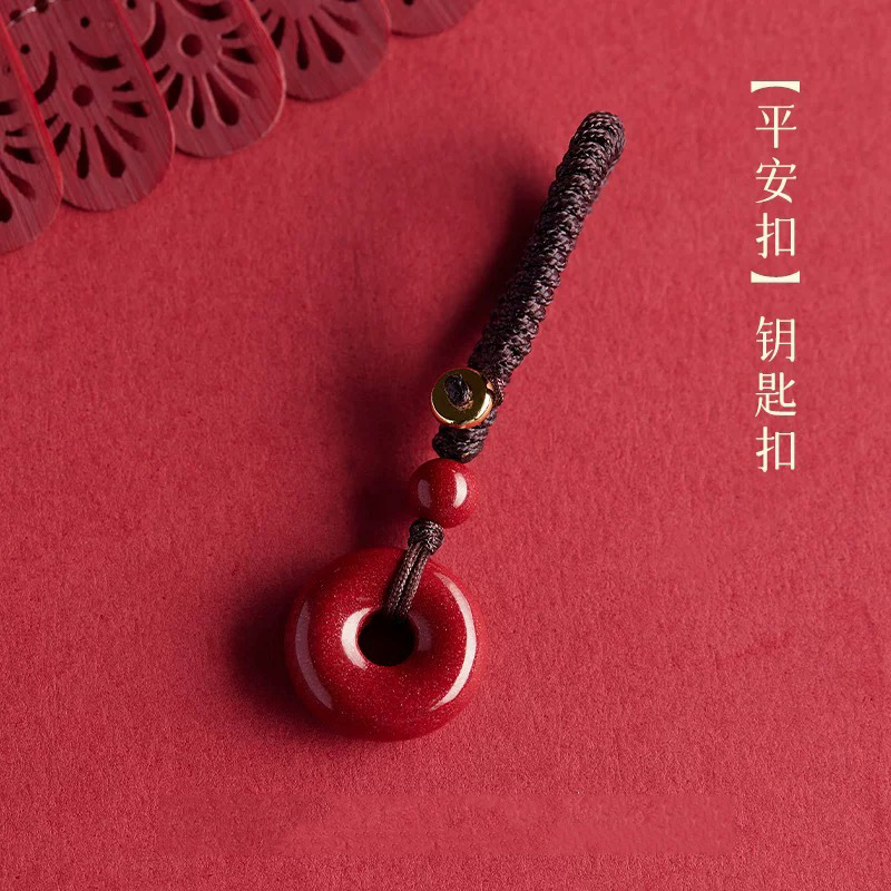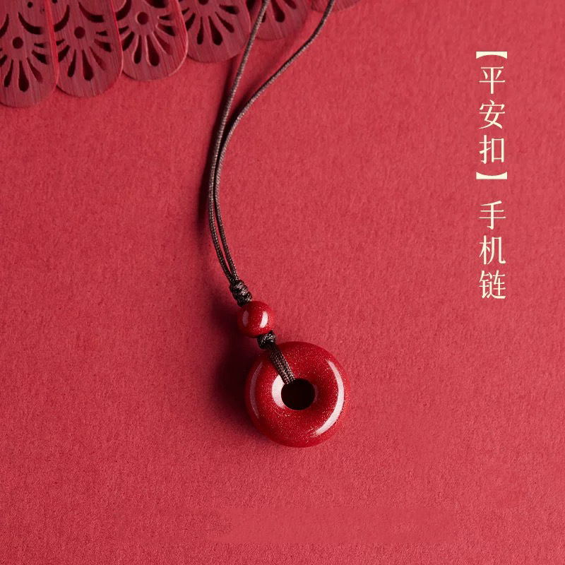 紫金砂硃砂平安扣吊墜男女款鑰匙扣硃砂平安扣手機鏈低含量硃砂