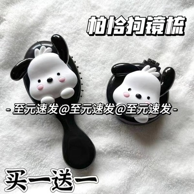 可愛帕恰狗便攜ins氣囊梳隨身氣墊梳宿舍一體迷你小鏡子學生