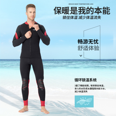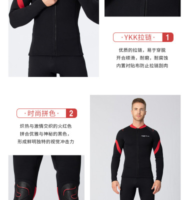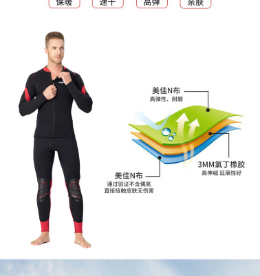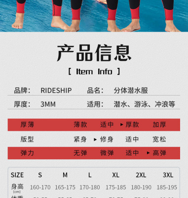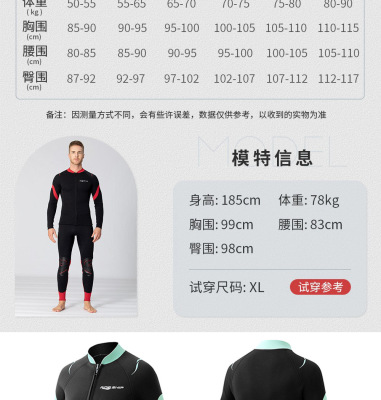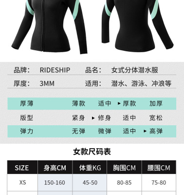 3mm Split Wet Suit Top with Long Sleeve and Bottom for Men's Freediving and Surfing, Female Diving Suit