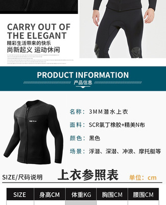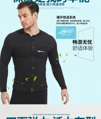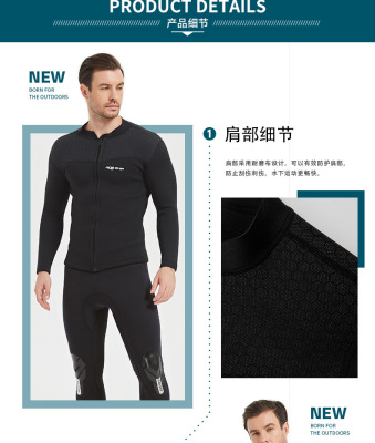 3MM Diving Suit Top with Wear-resistant Shoulders, Anti-slip Back, Separate Heating Black Diving Suit for Men and Women