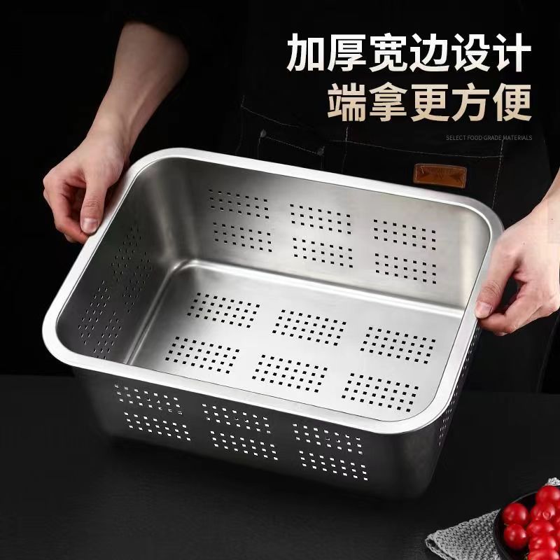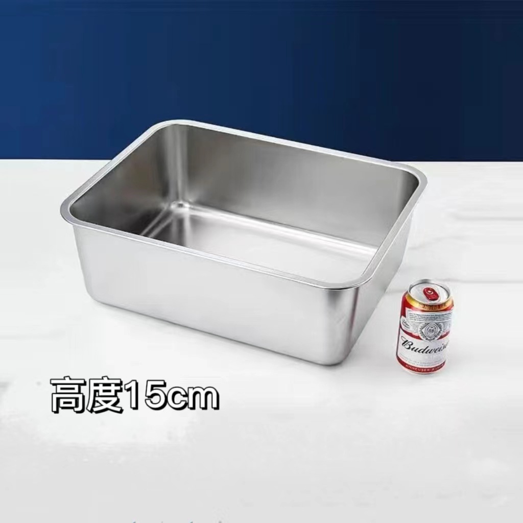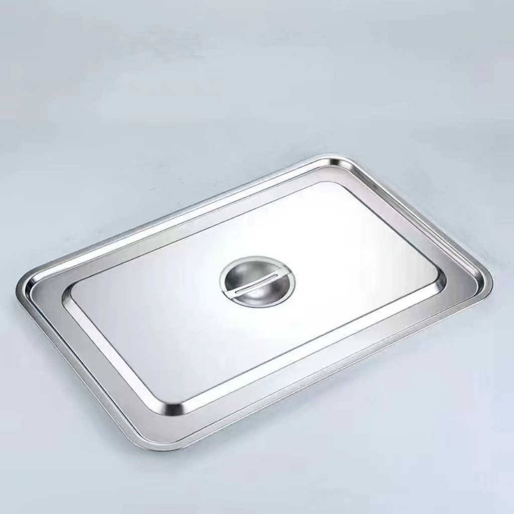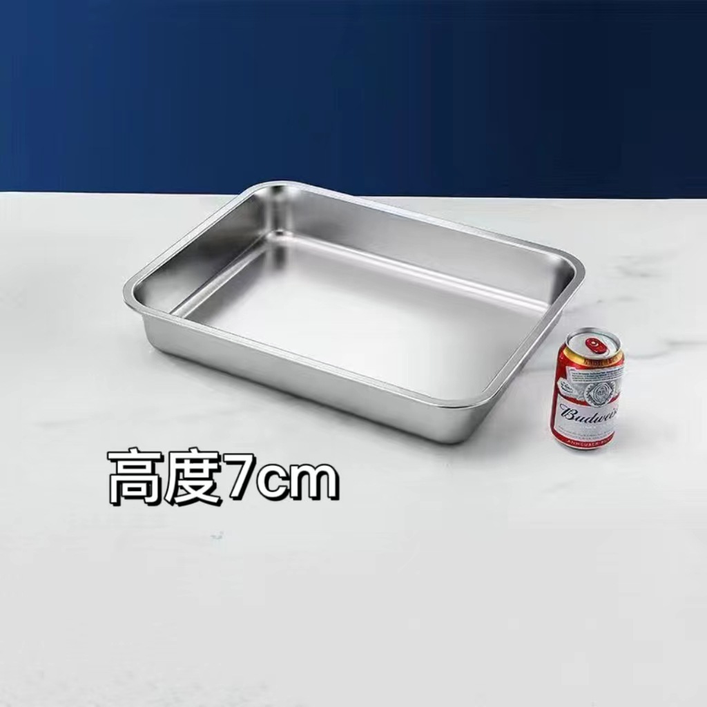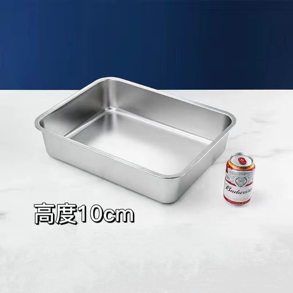 不鏽鋼平底方盆 加厚長方形方盤帶蓋自助餐快餐盆加深蒸飯托盤