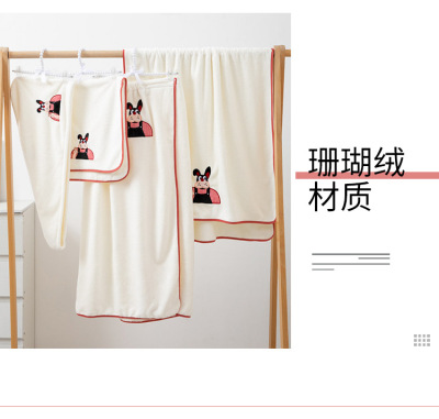 Manufacturer wholesale cartoon printed towels bath towels dry hair hats bath skirts coral velvet water-absorbent soft home women set towels