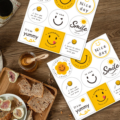 ins風可愛笑臉表情貼紙烘焙標籤奶茶罐頭封口貼裝飾貼不乾膠標籤