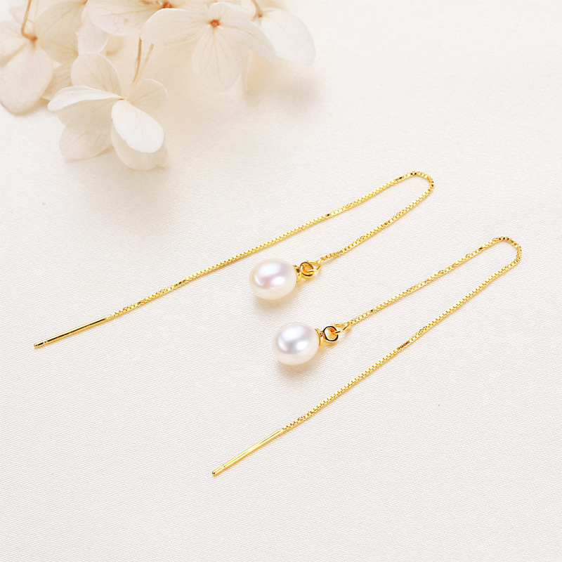 飾品批發6mm米形珍珠耳環銅鍍金色流蘇耳線淡水珍珠耳墜耳掛耳飾