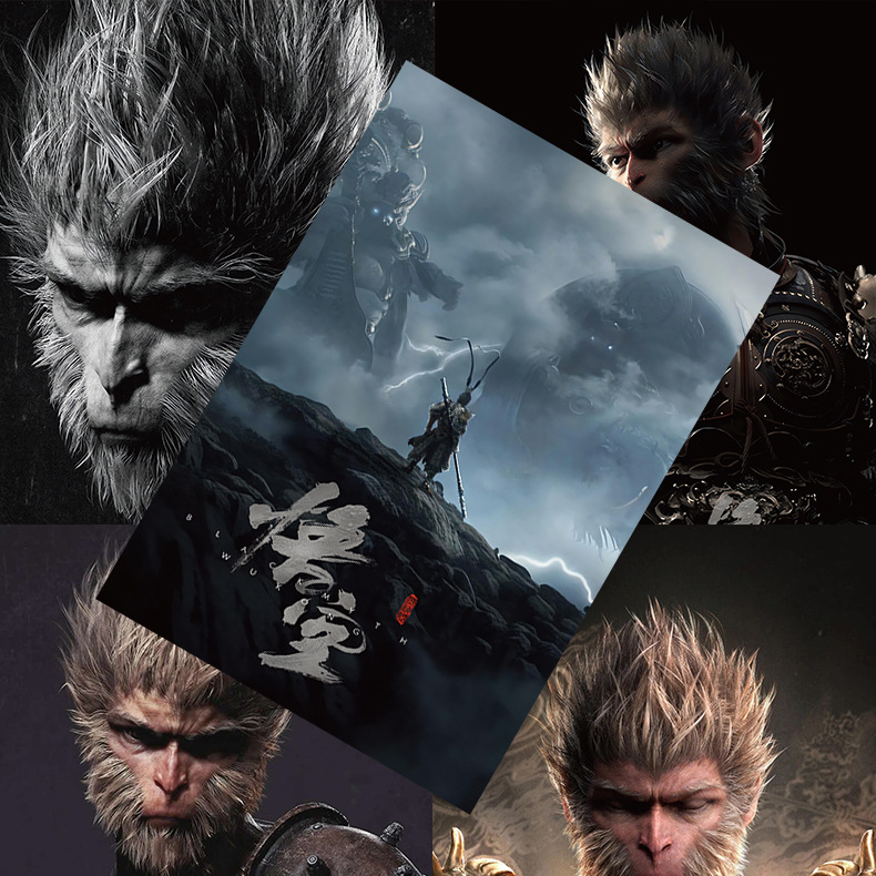 Black Lord Wukong Poster Set of 8 High-Quality Copperplate Paper Anime Peripheral Dormitory Wall Sticker Decor Background