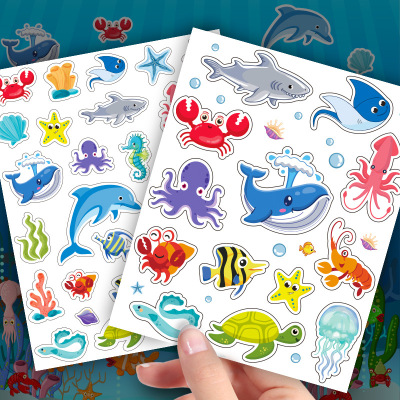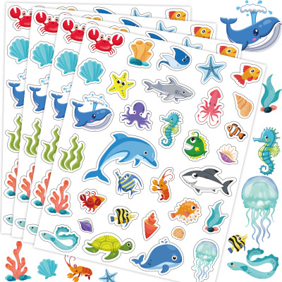 海底世界海洋動物貼紙可愛卡通圖案兒童裝飾防水貼畫幼兒園表揚貼