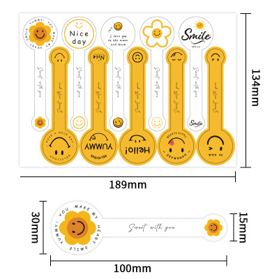 100貼/包ins風可愛笑臉烘焙貼紙黃色封口貼甜品蛋糕裝飾貼不乾膠