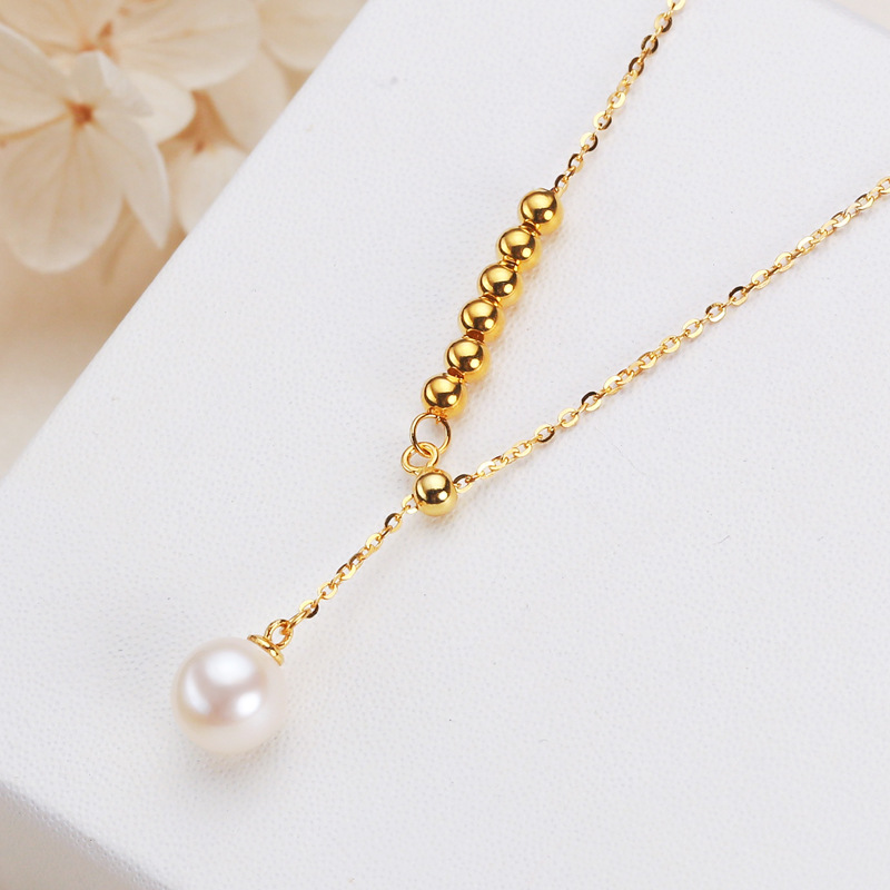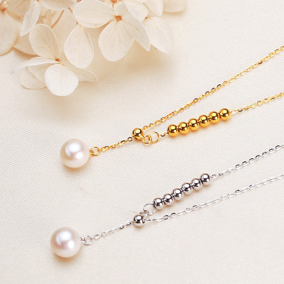 Wholesale jewelry 7mm round pearl S925 silver necklace Y chain pearl necklace clavicle chain freshwater pearl necklace