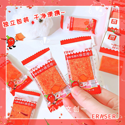Cartoon-style spicy chip-shaped eraser, high-quality and attractive children's fun stationery, suitable for primary school students, clean and little powder, correction eraser