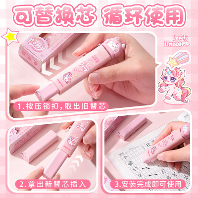 Kababear 3122 Push-Pull Rotary Eraser Cartoon Cute Pencil Correction Cleaner Less Dust Stationery for Primary School Students