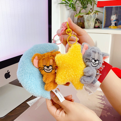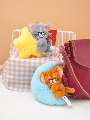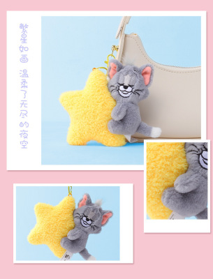 貓和老鼠抱月亮抱星星毛絨掛件星空系列正版鑰匙扣公仔玩偶包掛飾