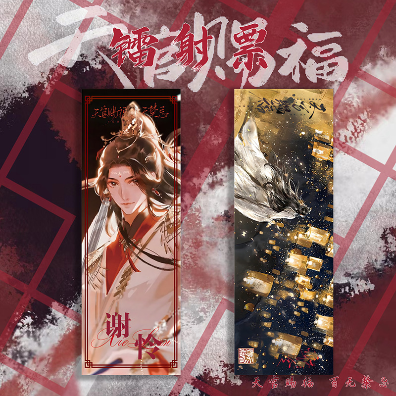 天官賜福雙面鐳射卡謝伶花城鐳射票UV印刷閃卡收藏燙金吧唧書籤