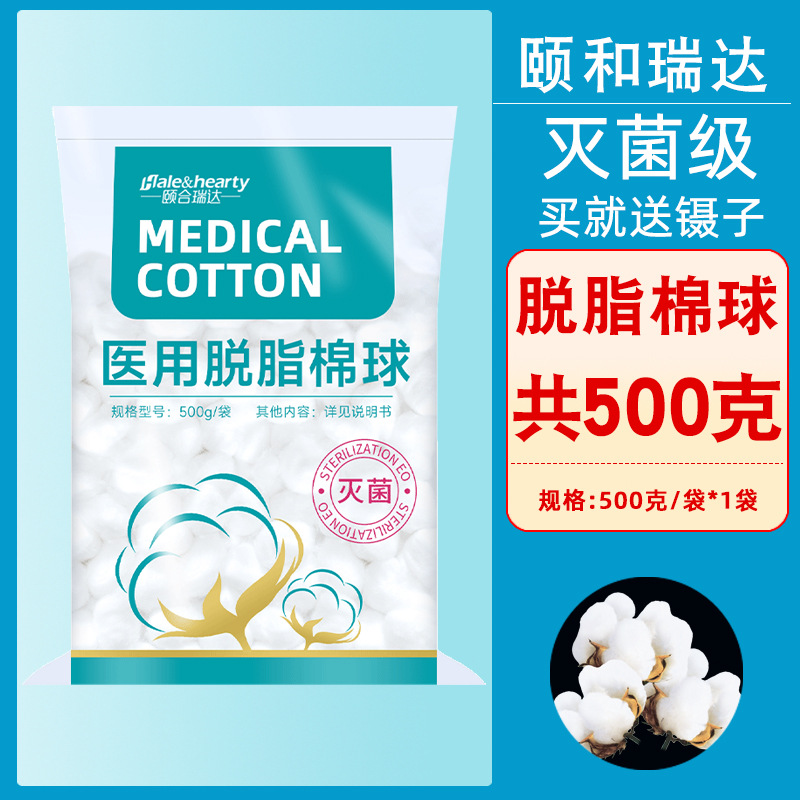 醫用棉球醫藥無菌蘸酒精碘伏傷口消毒止血藥棉500g衛生棉花球脫脂