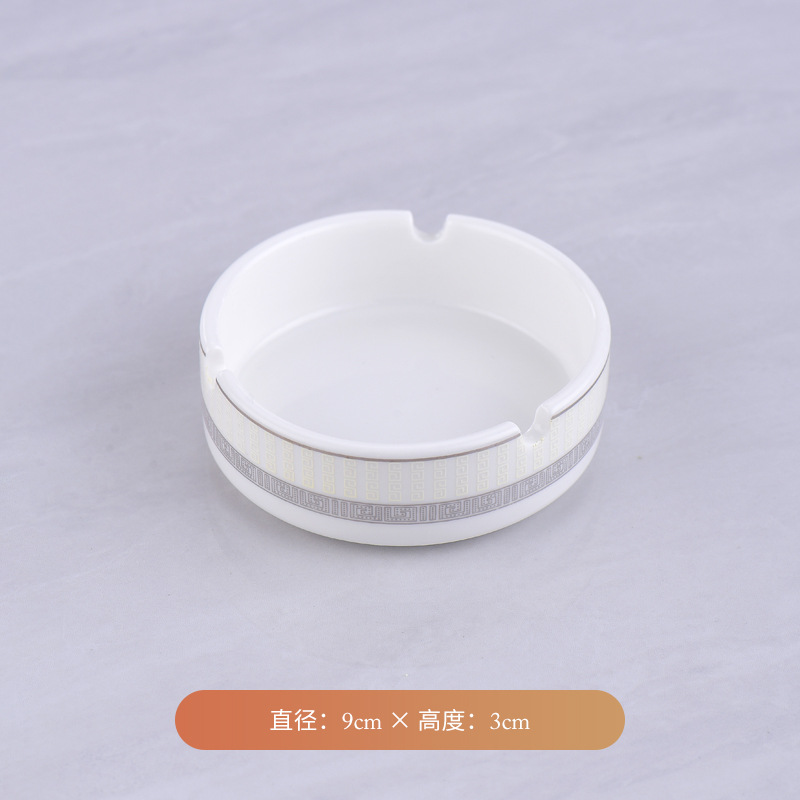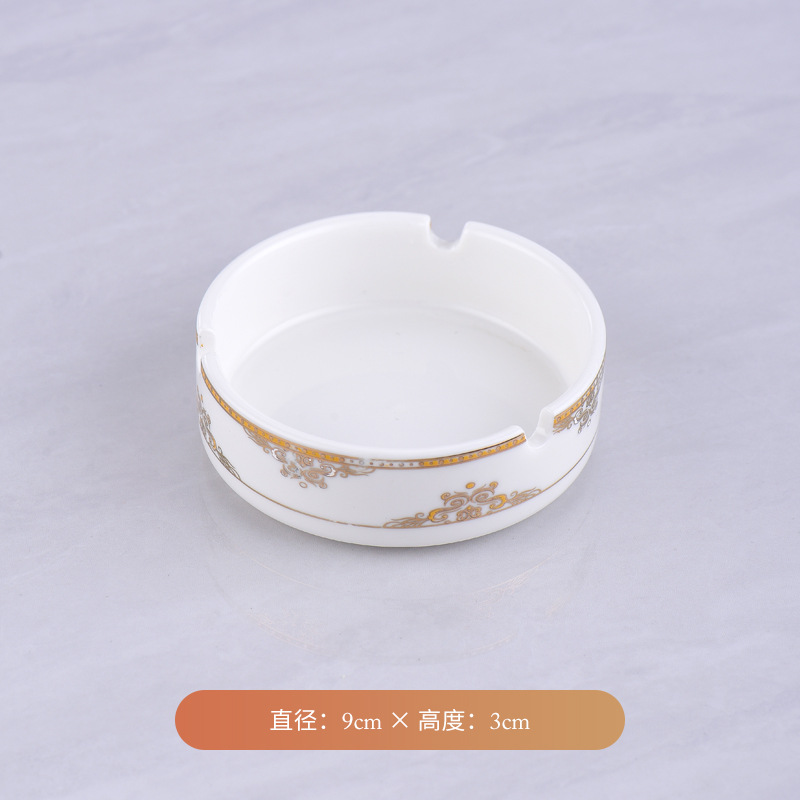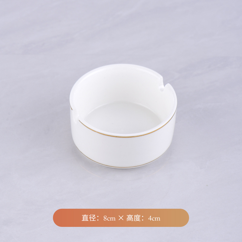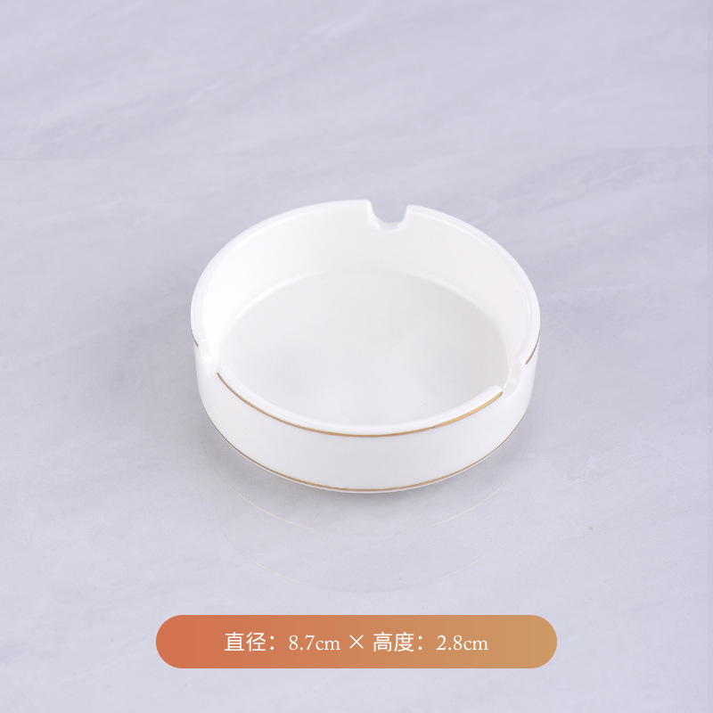 Wholesale pure white ceramic ashtray for hotels, guesthouses, bars, restaurants, and hotels, round gold-rimmed cigarette cup, supports custom logo.
