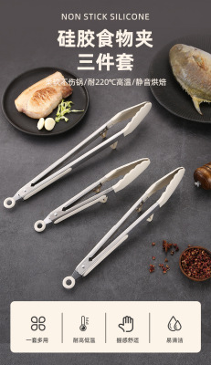 Silicone Kitchen Tongs Heat-Resistant Food Tongs Stainless Steel Tongs Food Tongs Serving Tongs for Grilling and Pan-Frying Steak