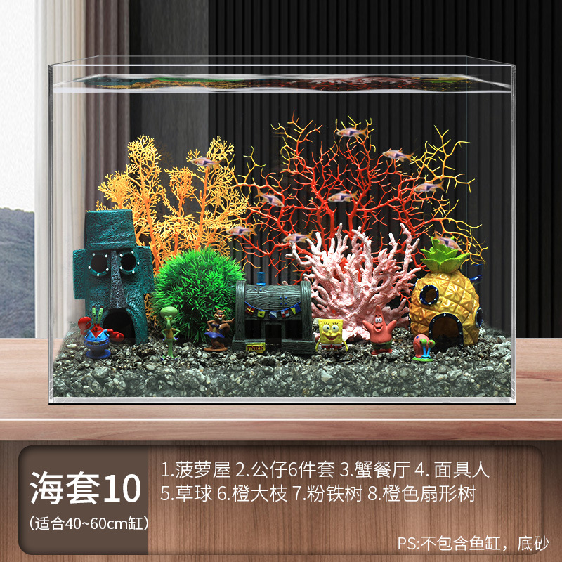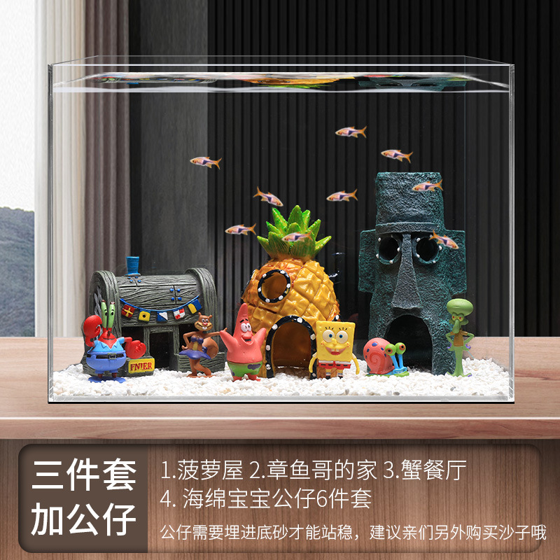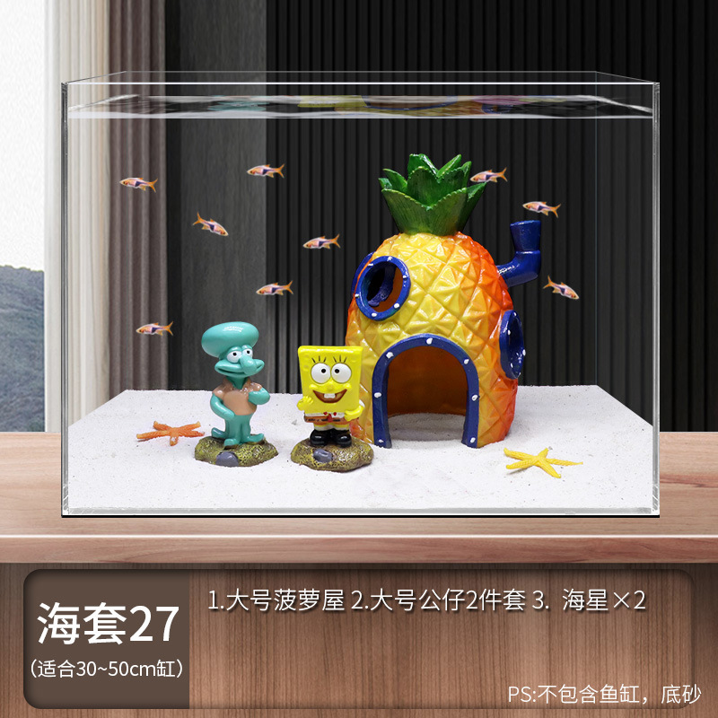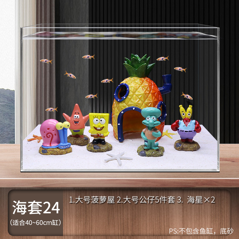 菠蘿屋魚缸造景全套餐卡通公仔擺件躲避屋海綿寶寶小房子裝飾布景