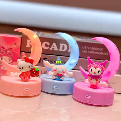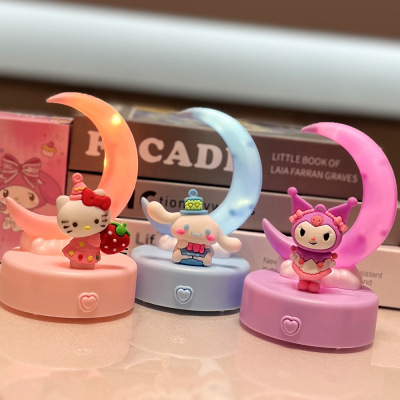 新款卡通夢幻月亮小夜燈庫洛米美樂蒂款式小擺件兒童發光桌面裝飾