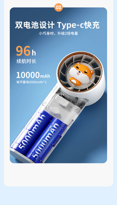 K7 Turbine Handheld Fan USB Mini Fan Outdoor Portable Dual Battery Long-Lasting Handheld Fan Direct Factory