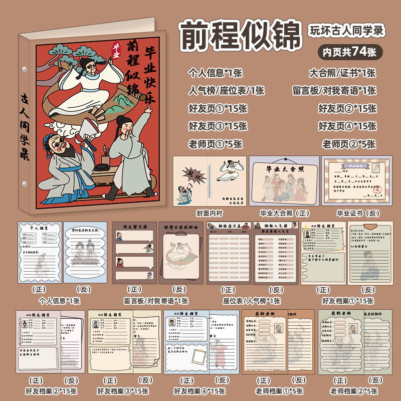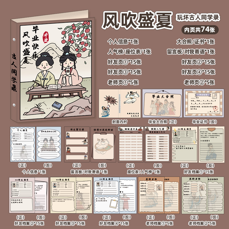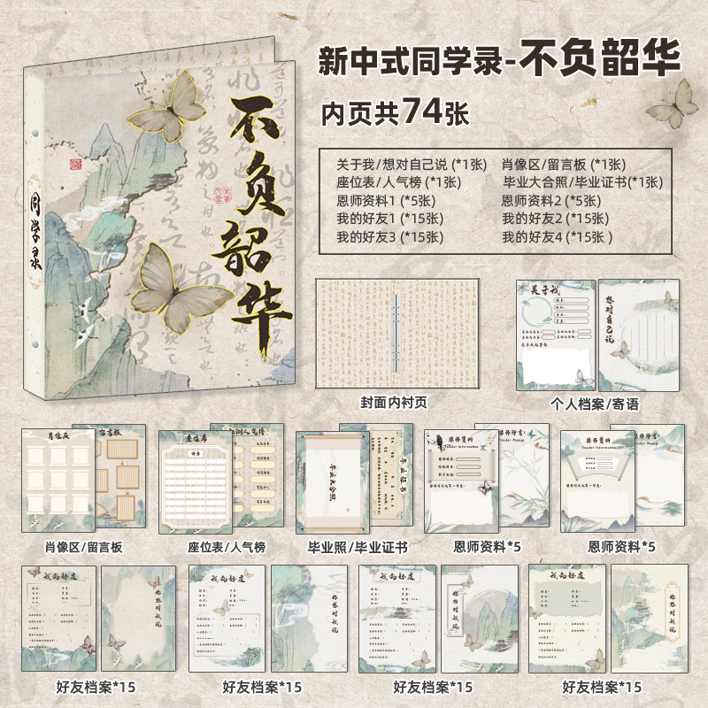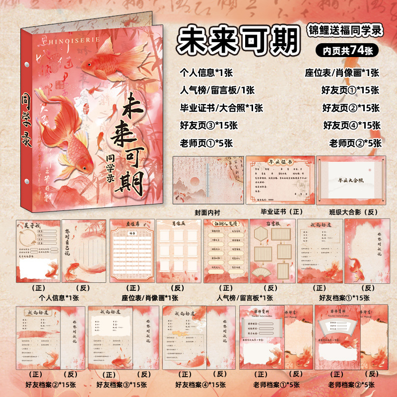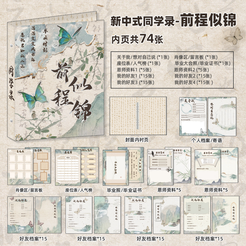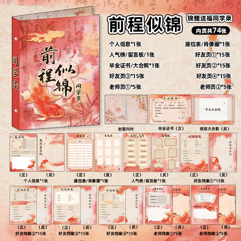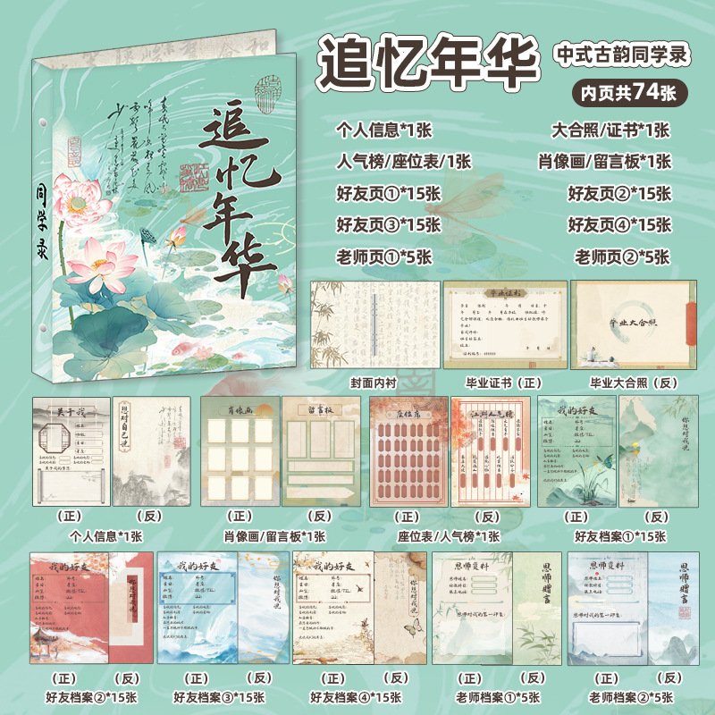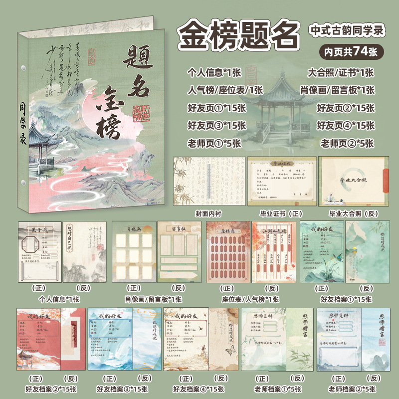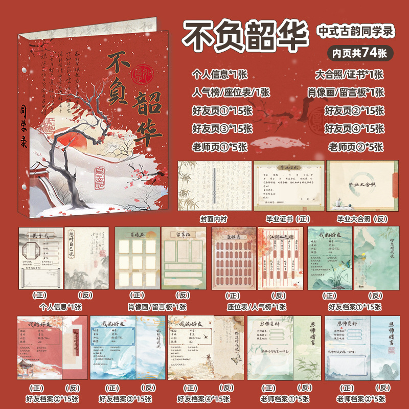 新中式同學錄2024新款活頁本小學生六年級燙金高級感中國風留言冊