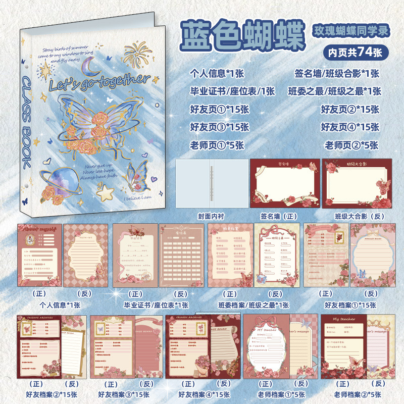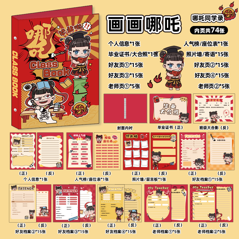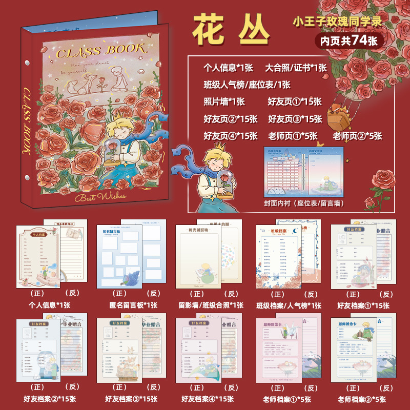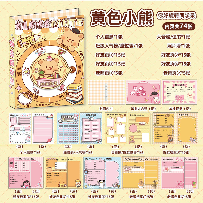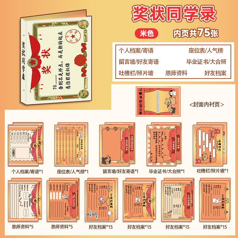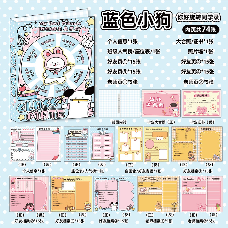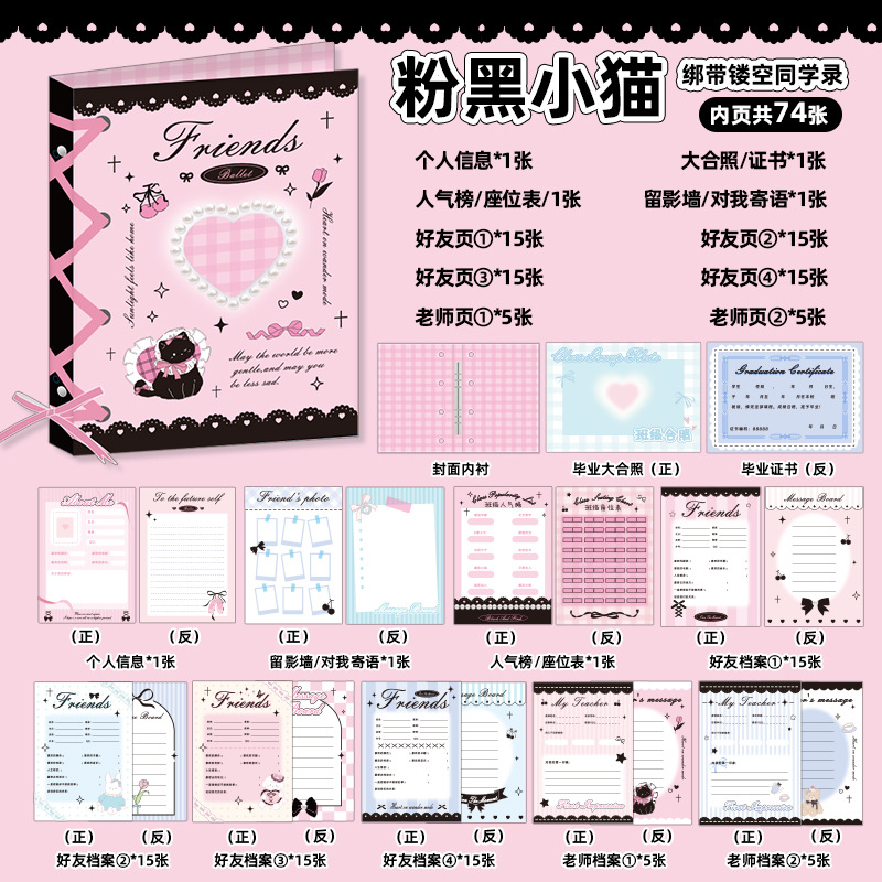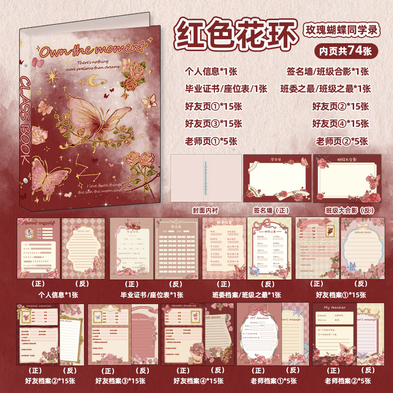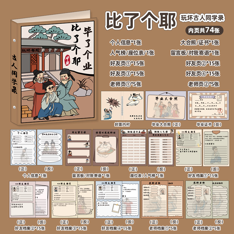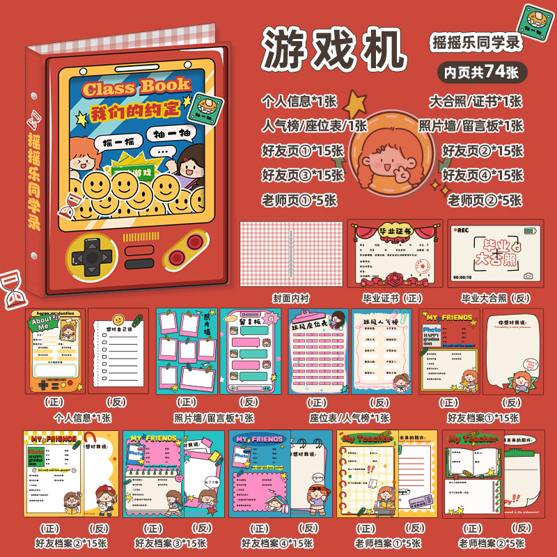 新中式同學錄2024新款活頁本小學生六年級燙金高級感中國風留言冊