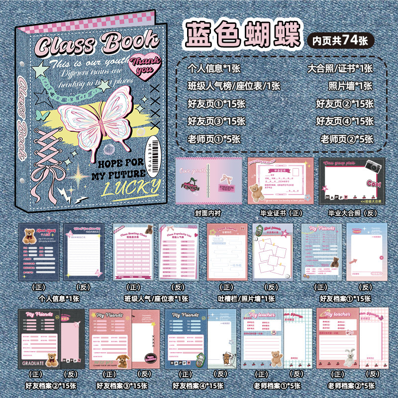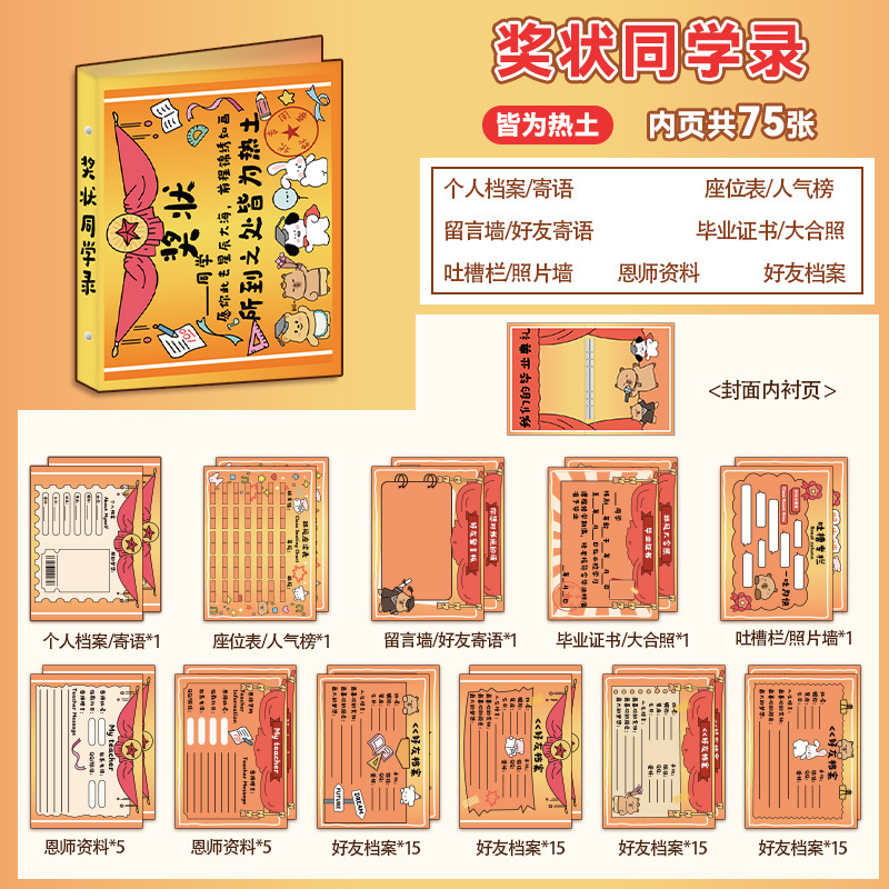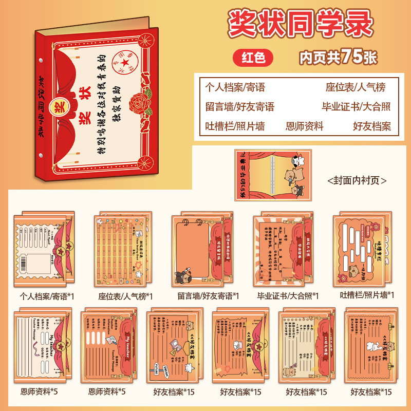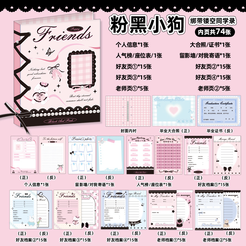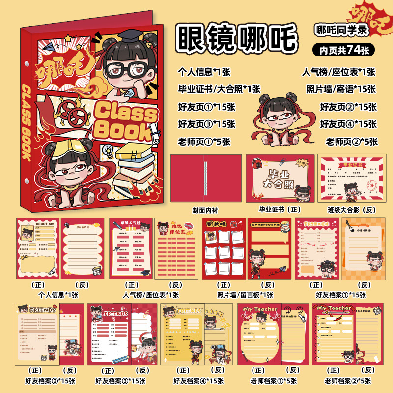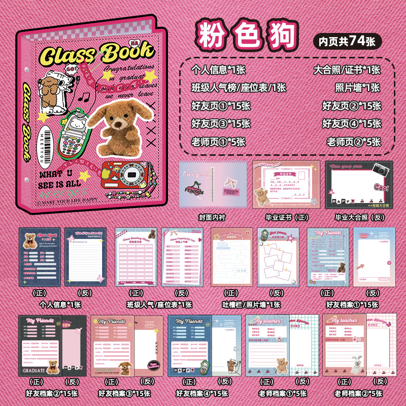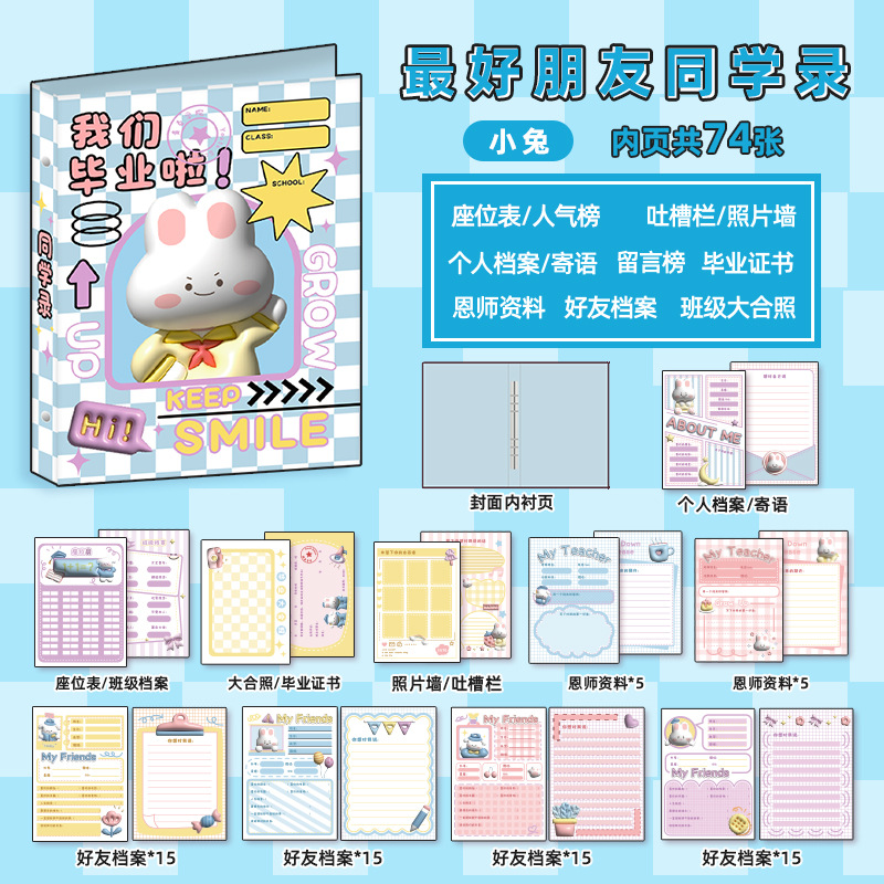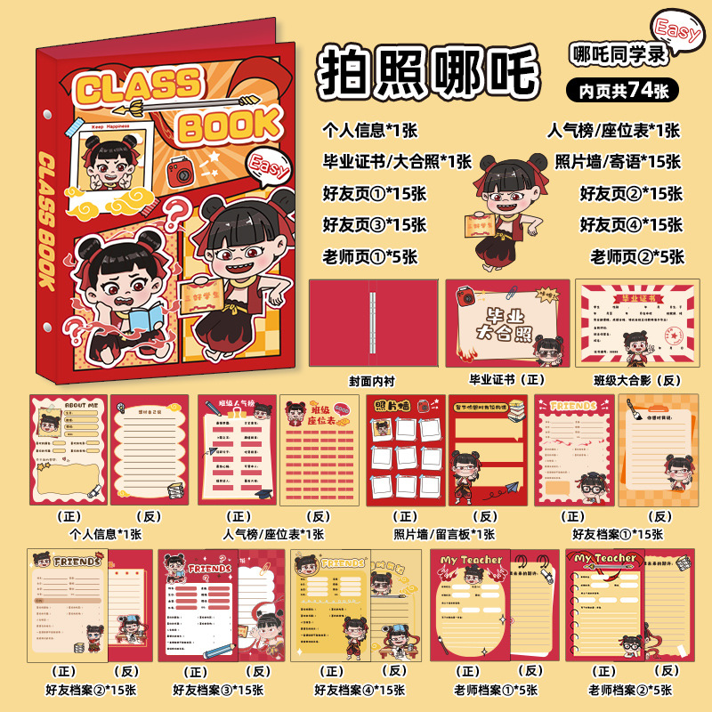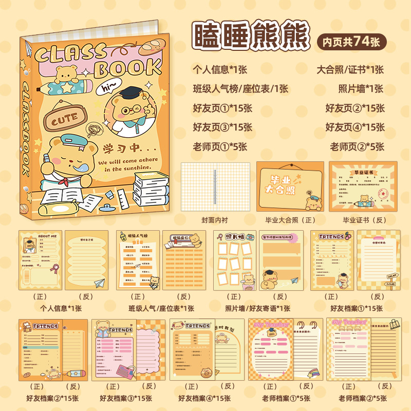 新中式同學錄2024新款活頁本小學生六年級燙金高級感中國風留言冊