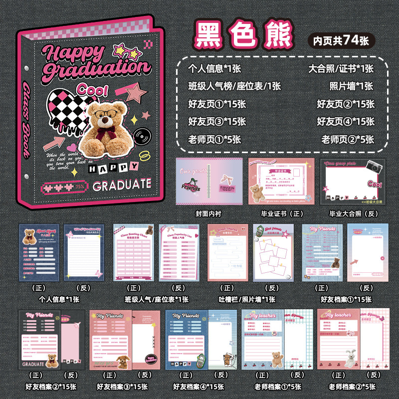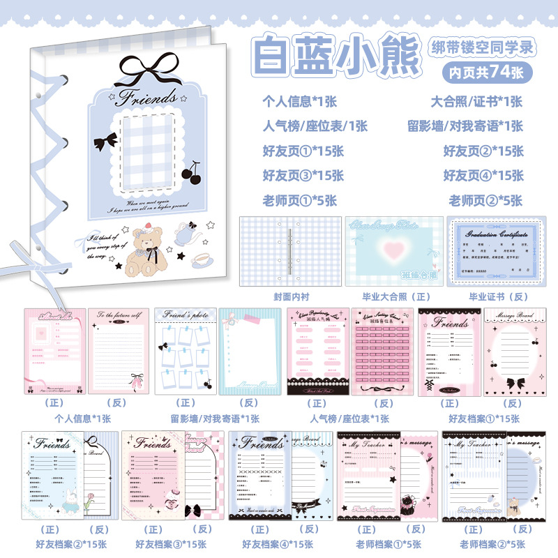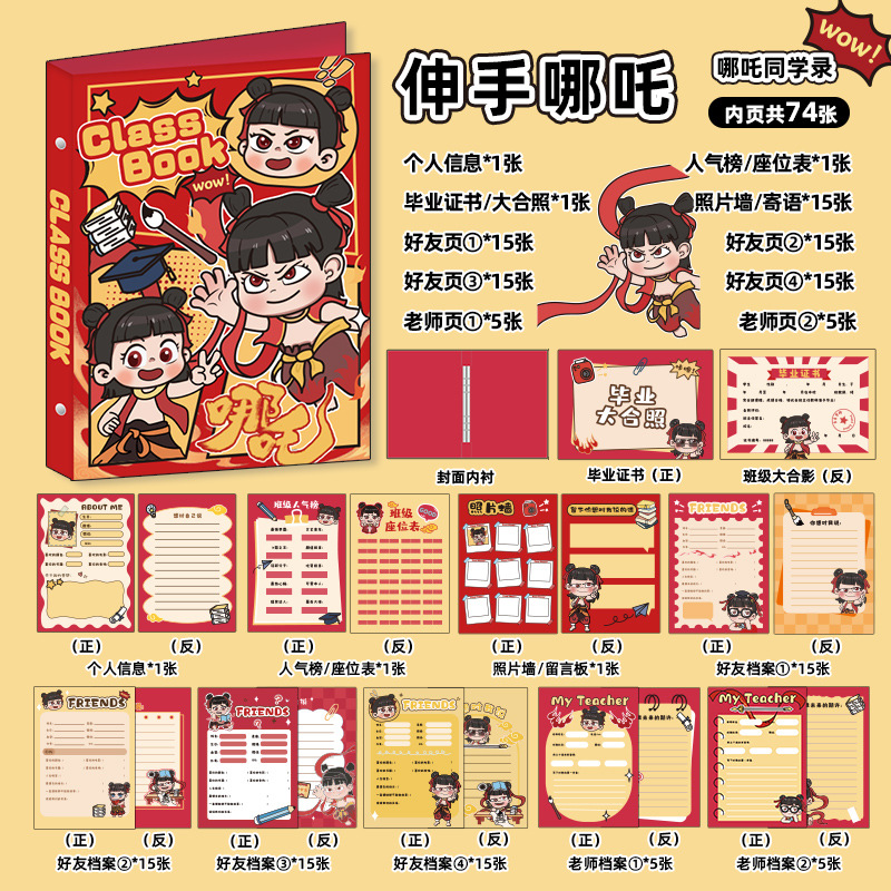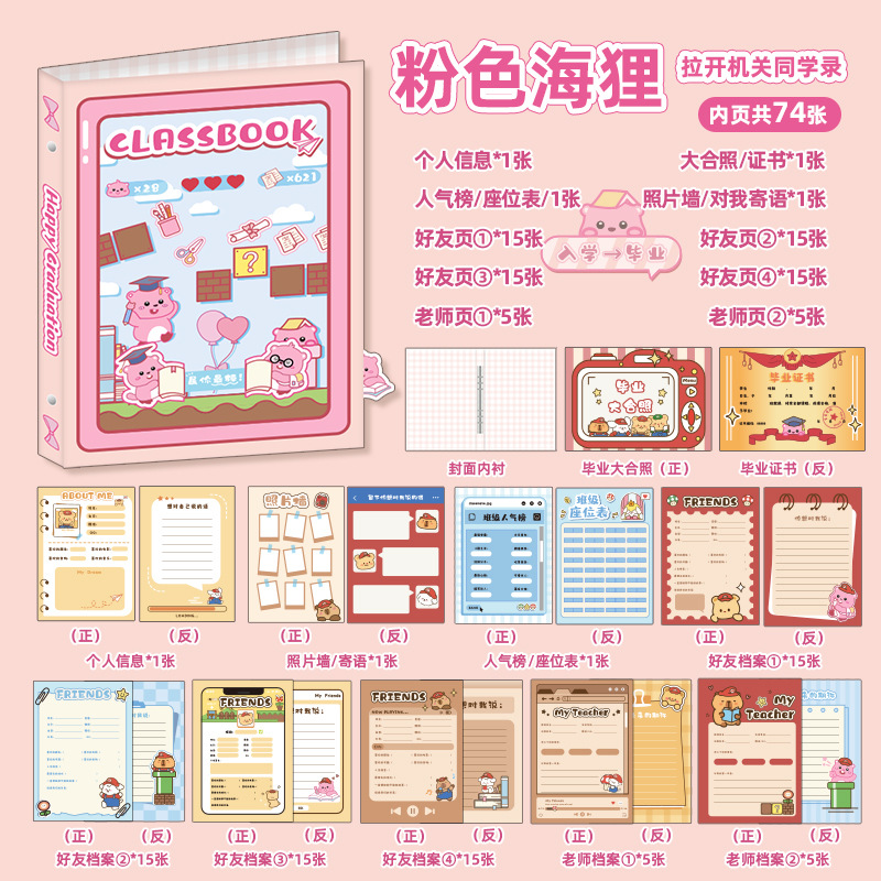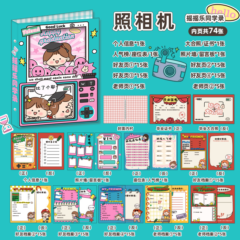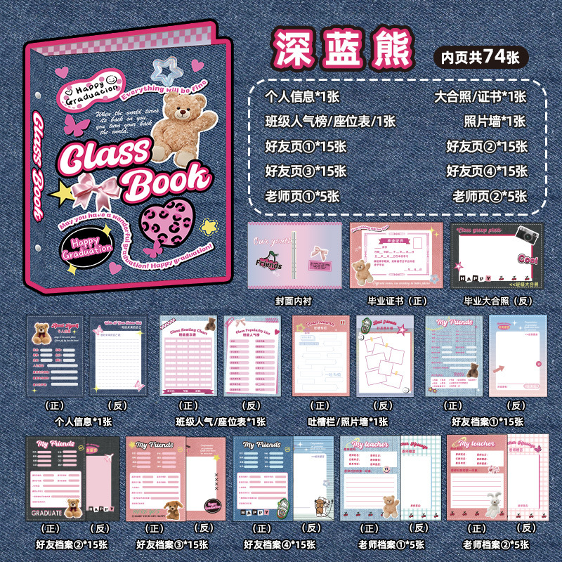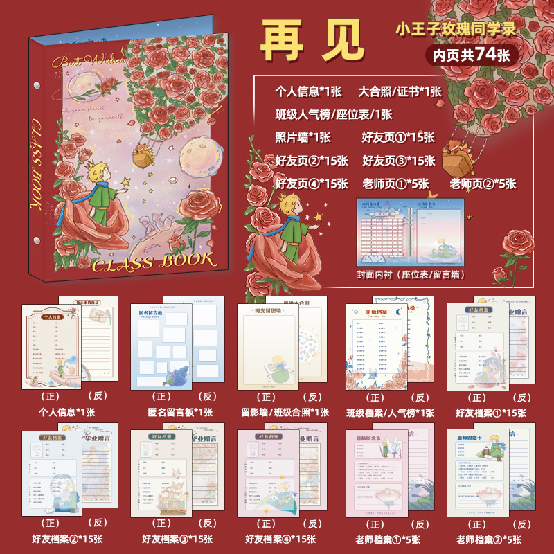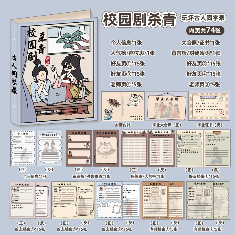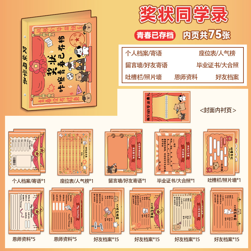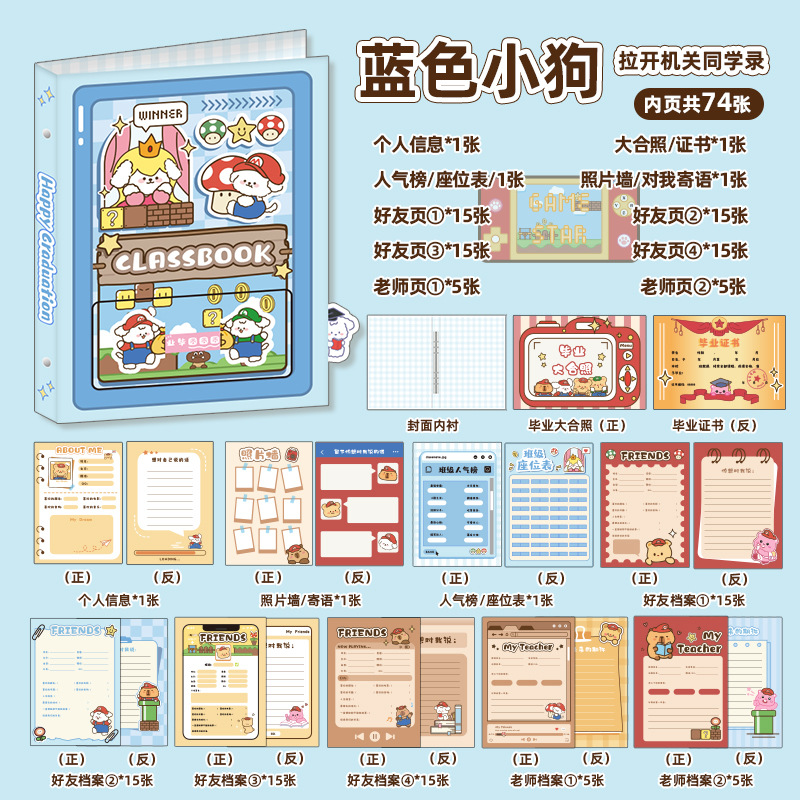 新中式同學錄2024新款活頁本小學生六年級燙金高級感中國風留言冊