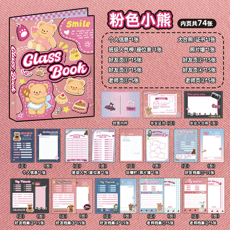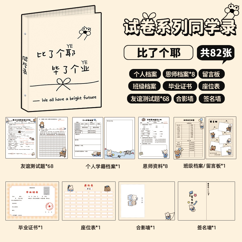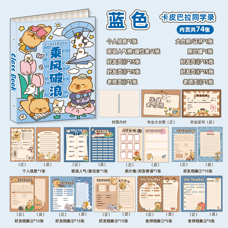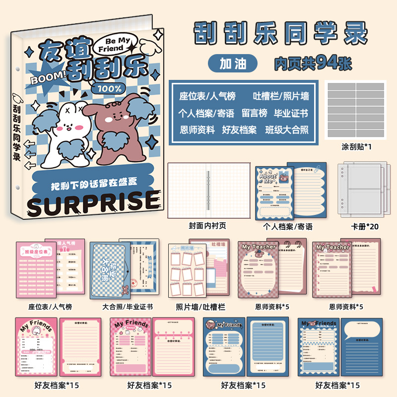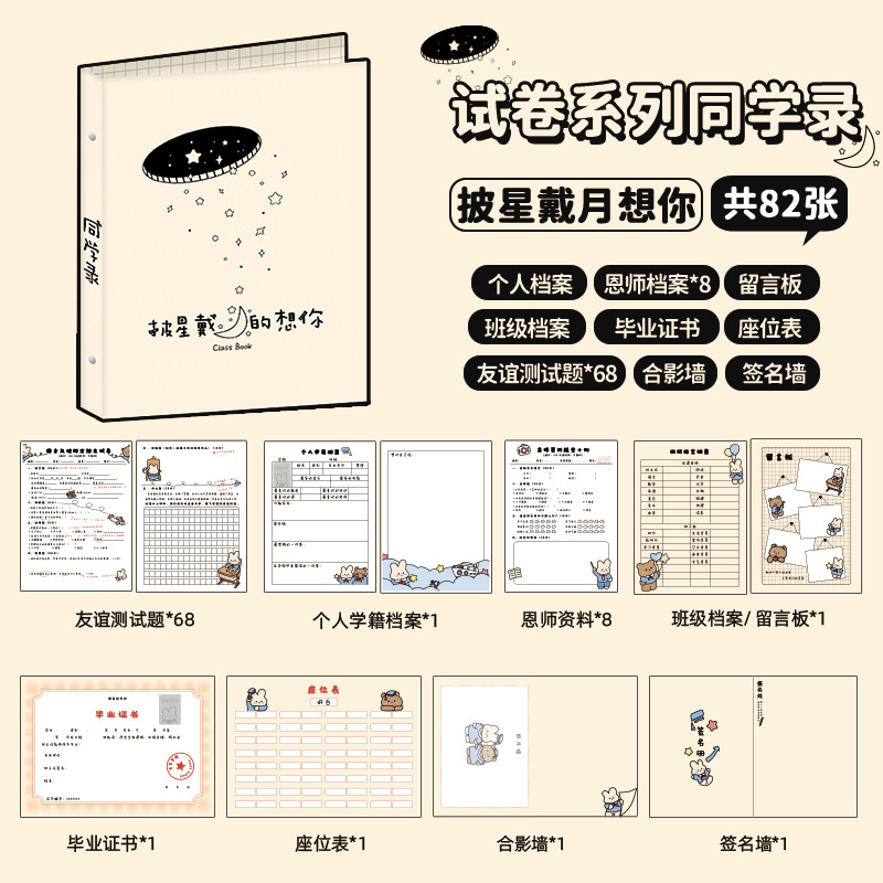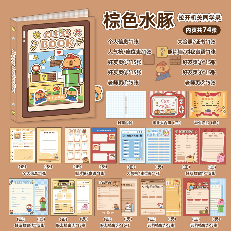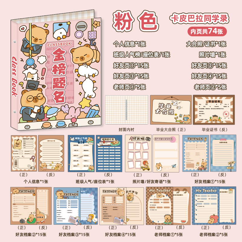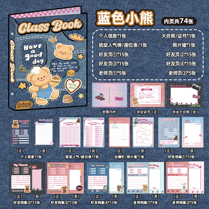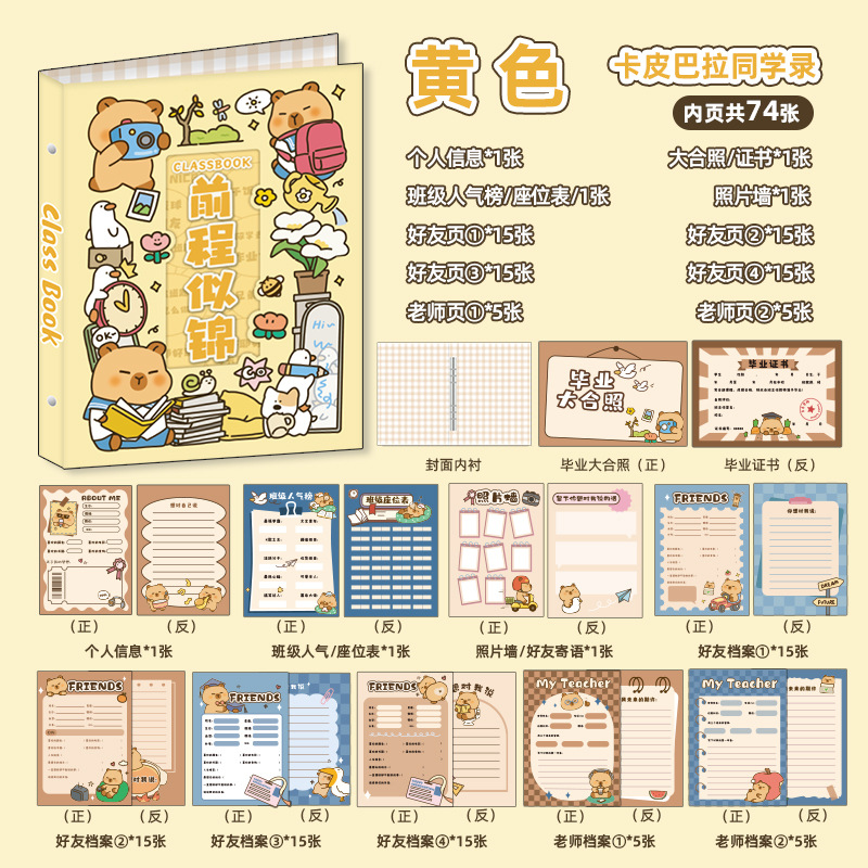 新中式同學錄2024新款活頁本小學生六年級燙金高級感中國風留言冊