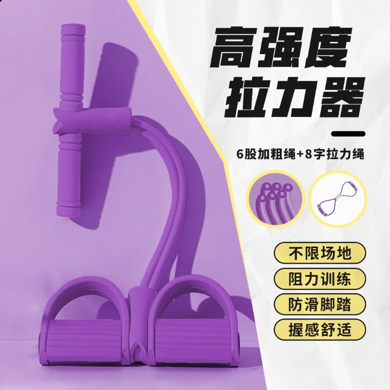 Manufacturer Direct Sale Multi-functional Leg Foot Pedal Elastic Rope Supine Sit-up Pull-up Rope Fitness Four-tube Foot Pedal Pull-up Machine