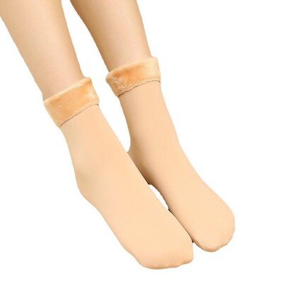 襪子女秋冬光腿加厚加絨肉色女襪冬季毛絨保暖棉襪神器中筒雪地襪
