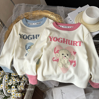 New autumn children's T-shirt for girls, casual and fashionable with teddy stitching long-sleeved shirt for children wholesale