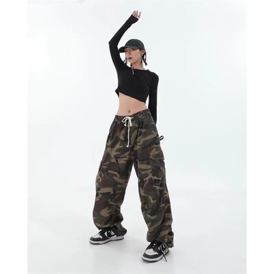 美式高街復古hiphop嘻哈迷彩工裝褲顯瘦褲子女束腳休閒褲ins潮牌