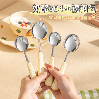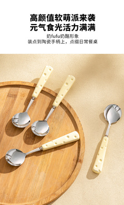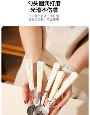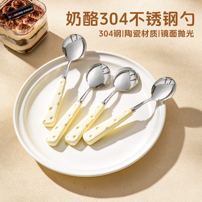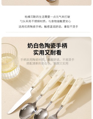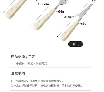Creative 304 stainless steel knife fork spoon cheese ceramic handle high-end light luxury Western-style knife fork spoon dessert spoon