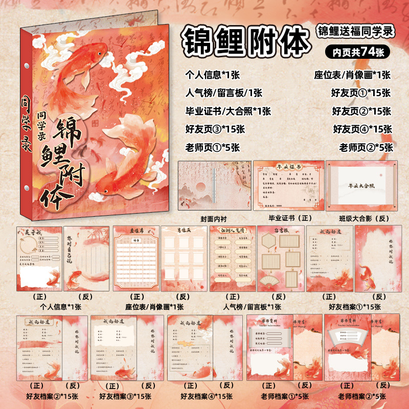 錦鯉同學錄高顏值ins風小學生六年級古風活頁學生畢業紀念冊2025