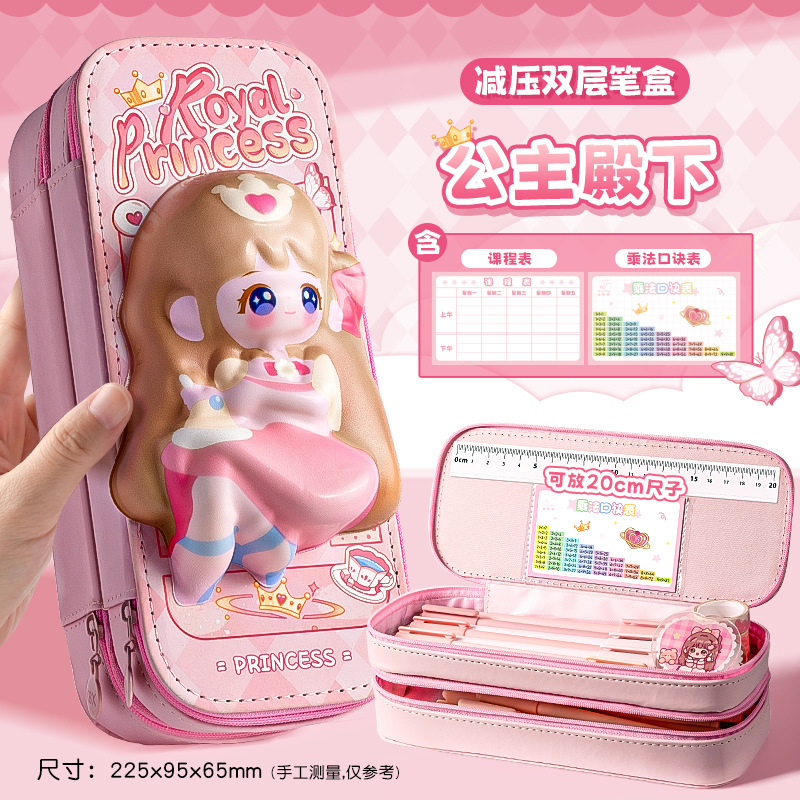 3D Stereo Pencil Case with Double Layers – Cute, High-Value, and High-Capacity Stress-Relief Stationery Box for Girls and Kids