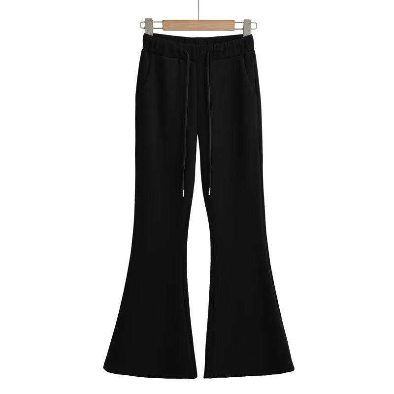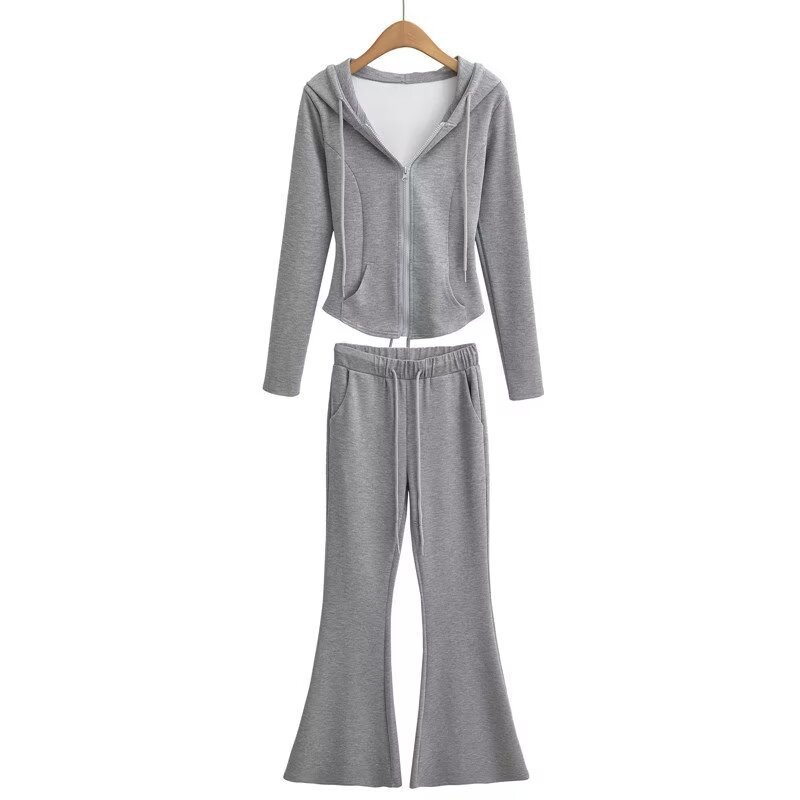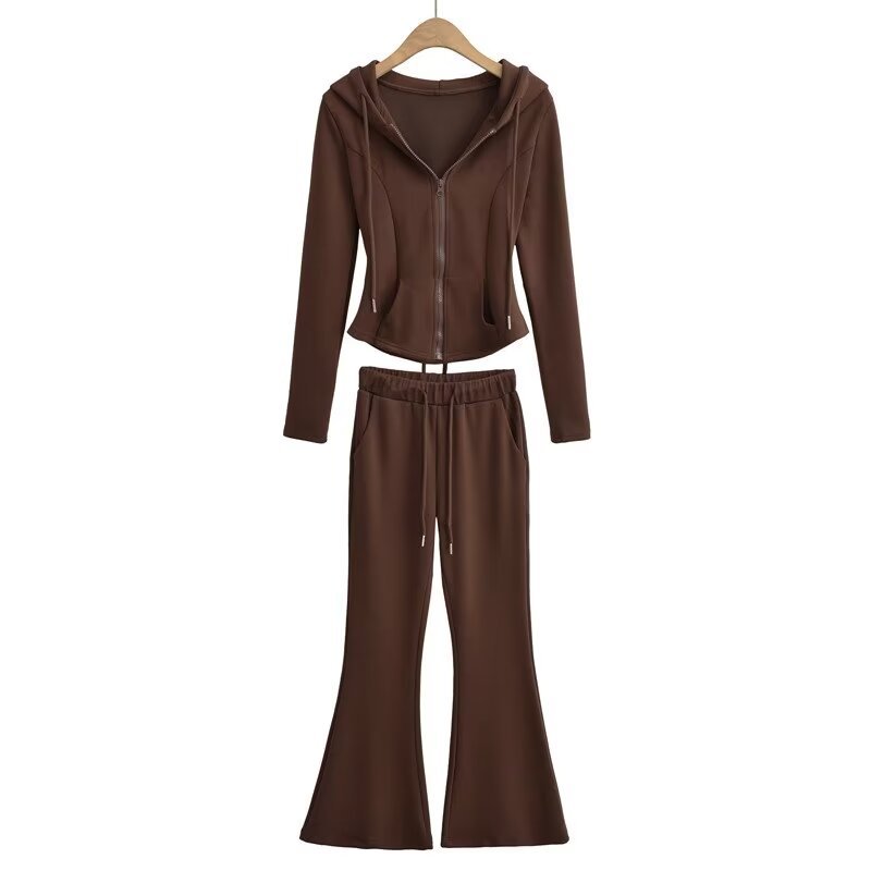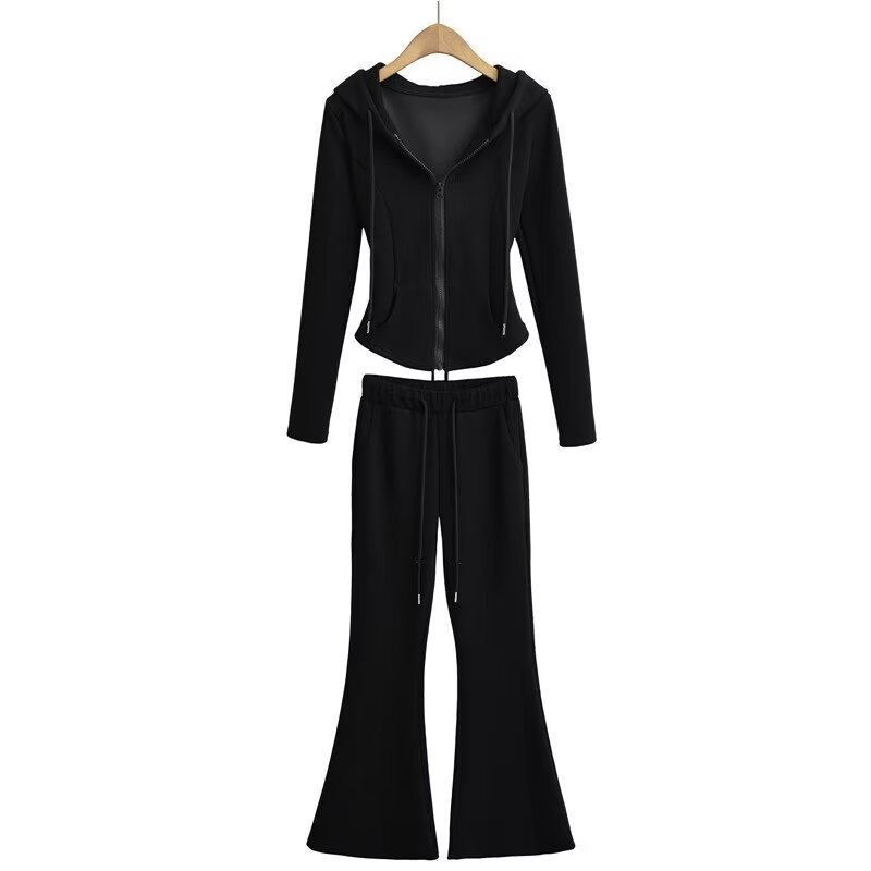 辣妹連帽後背綁帶夜跑套裝喇叭褲 休閒衛褲衛衣兩件套拉鏈開衫