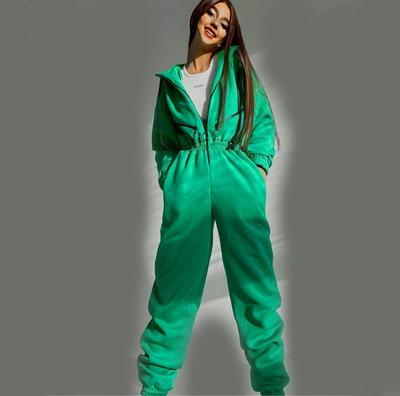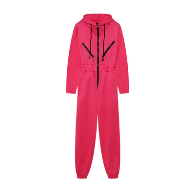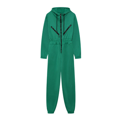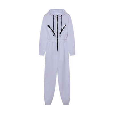 跨境熱賣2022亞馬遜ebay運動休閒女裝拉鏈裝飾連帽連體褲連體套裝